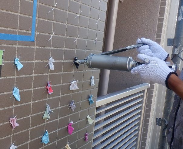 堺市のマンション外壁のタイル張替え工事と防水工事を行いました